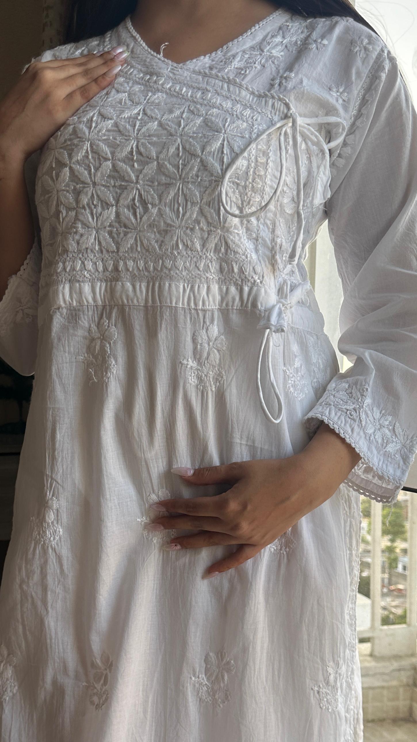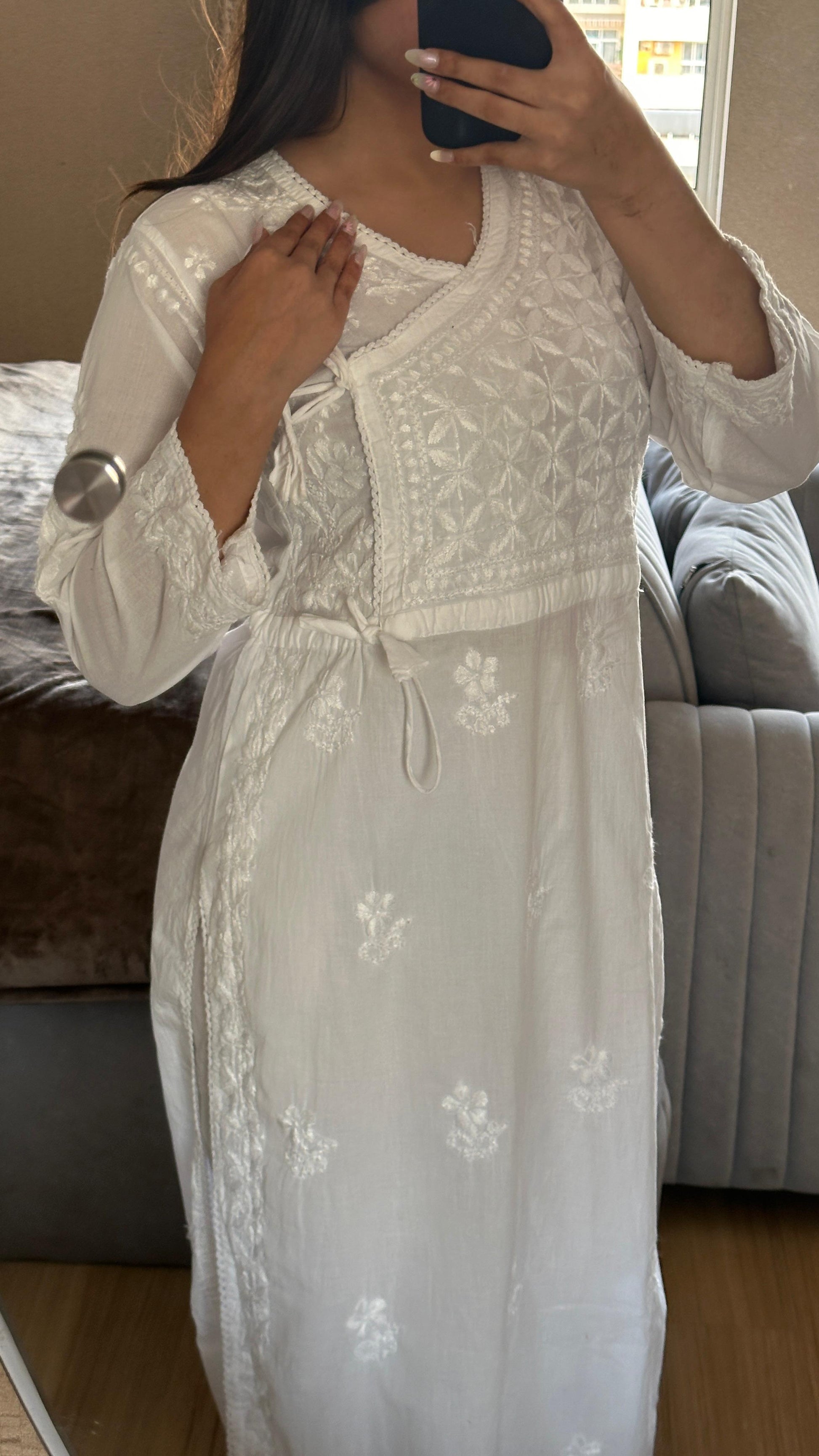 - Design: Handcrafted chikankari patterns elevate the timeless Angrakha silhouette.