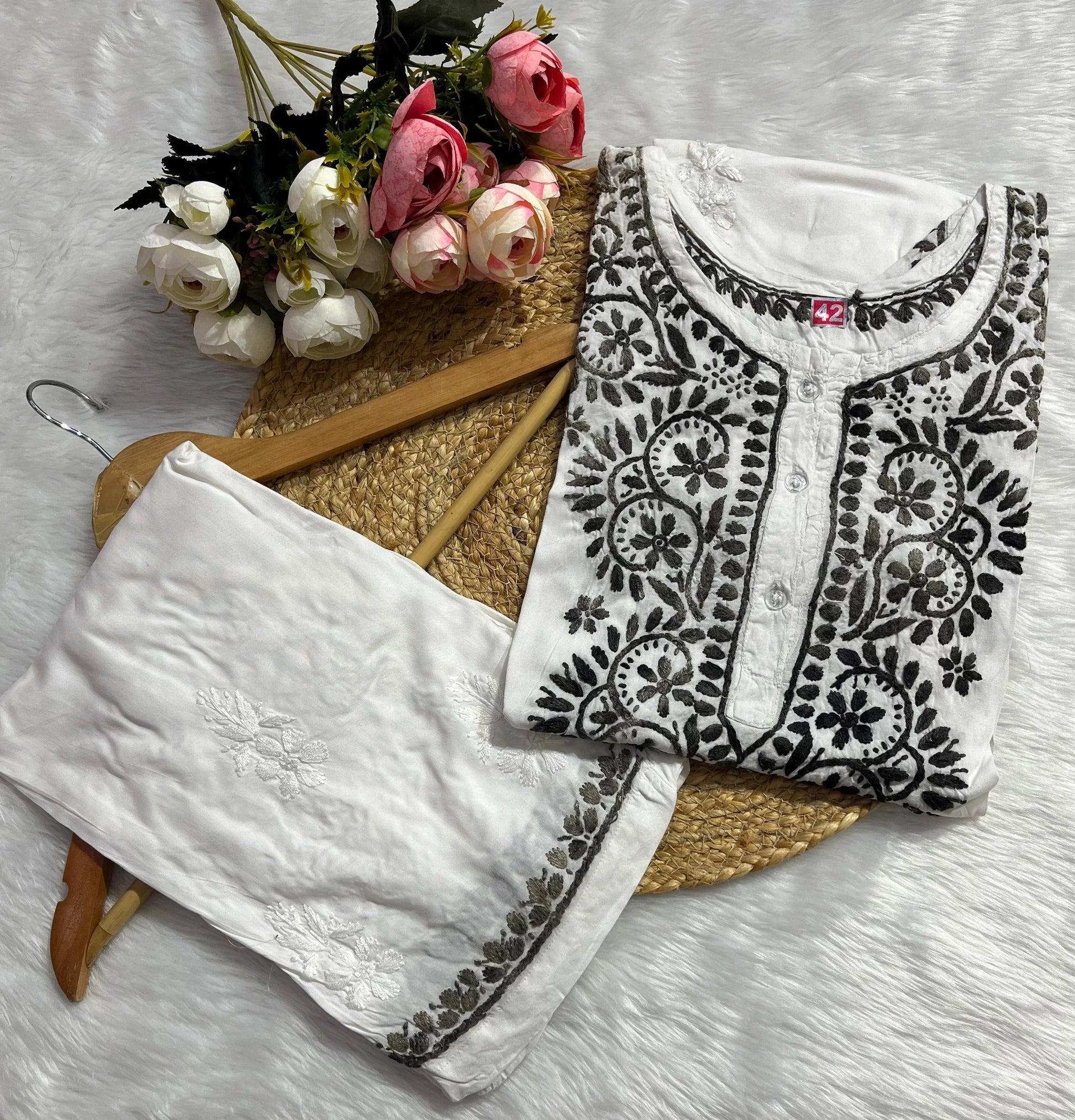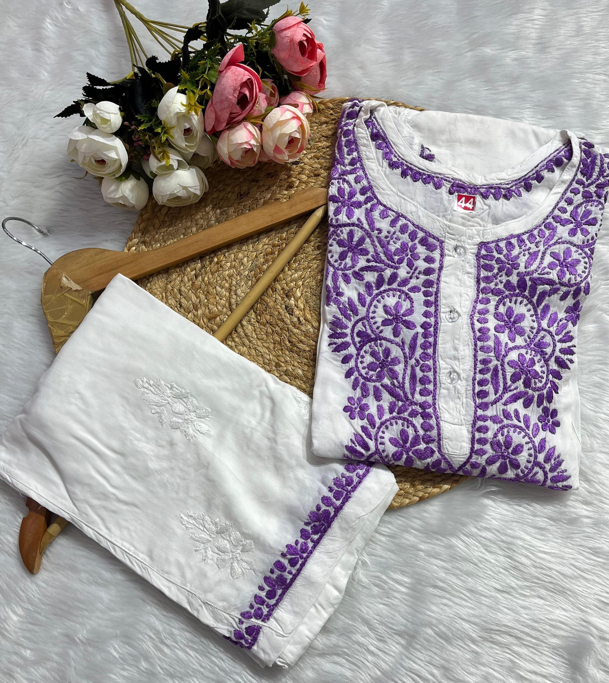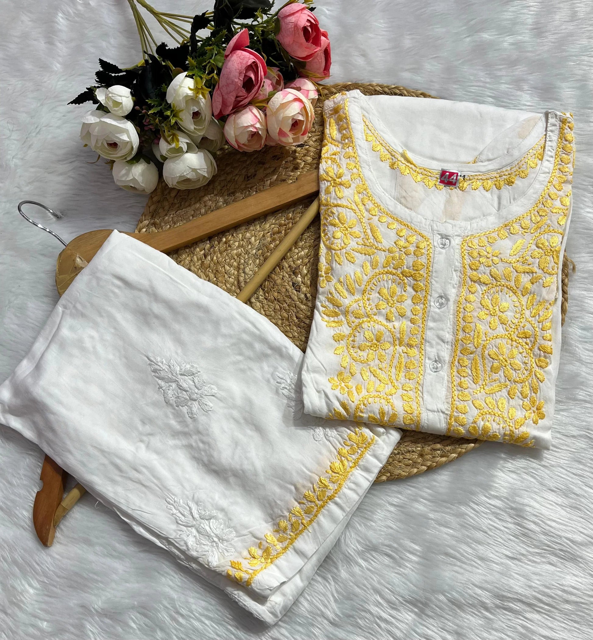 Elevate your everyday style with our Modal Co-ord Set, a seamless blend of comfort and elegance. Featuring intricate chikankari embroidery, this ensemble redefines minimalistic sophistication.
