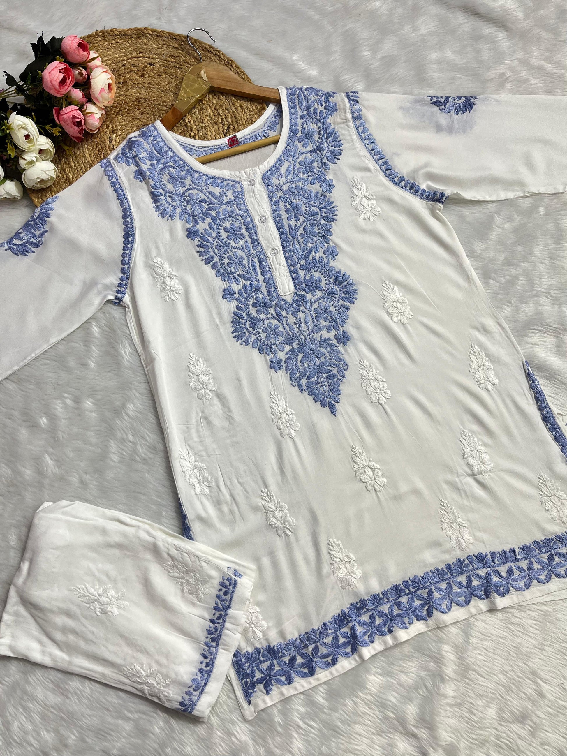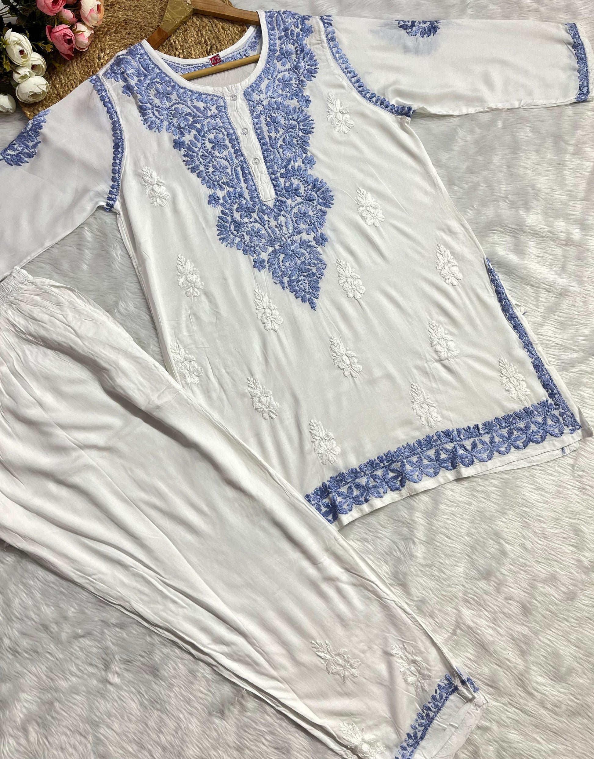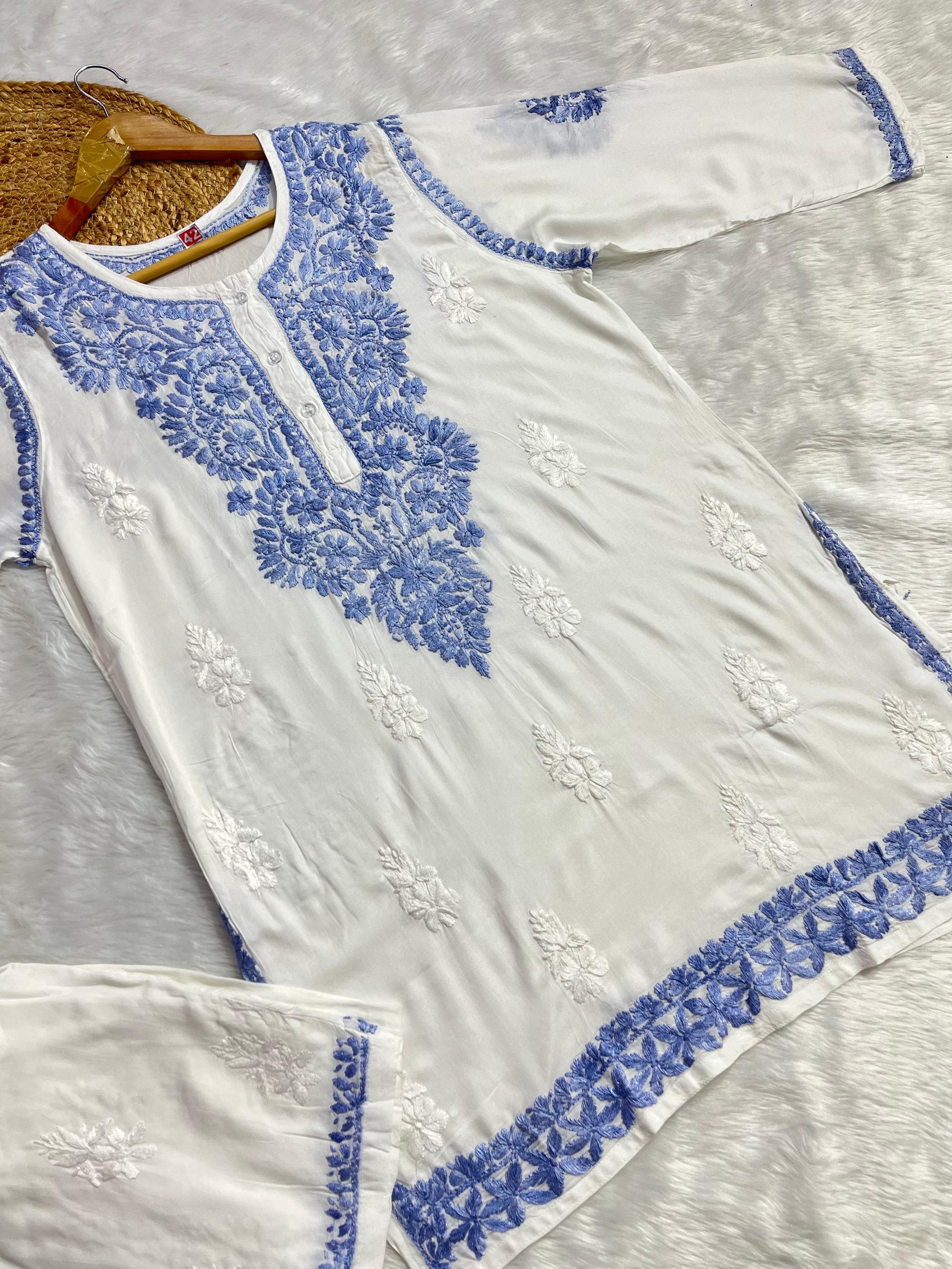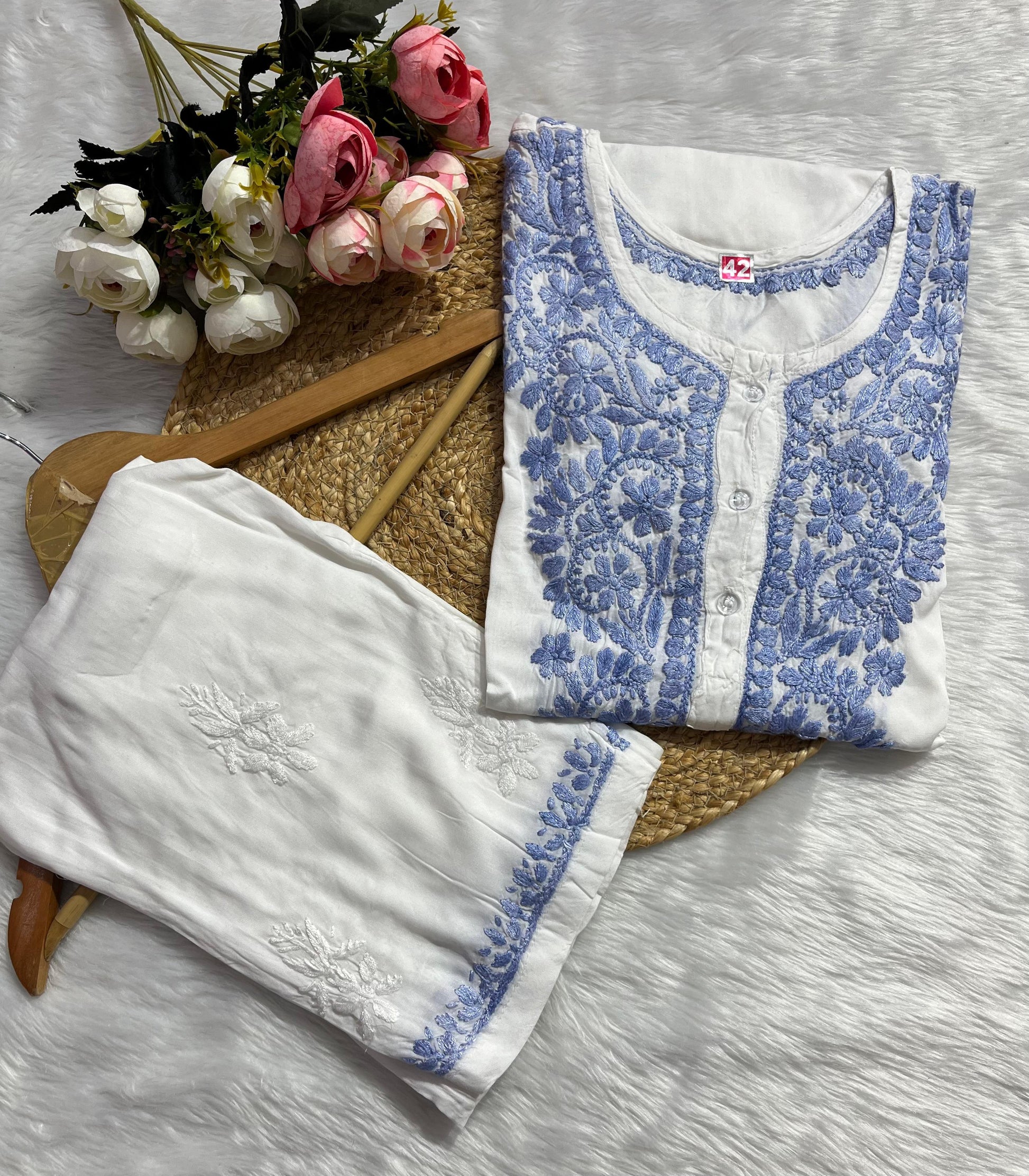Elevate your everyday style with our Modal Co-ord Set, a seamless blend of comfort and elegance. Featuring intricate chikankari embroidery, this ensemble redefines minimalistic sophistication.