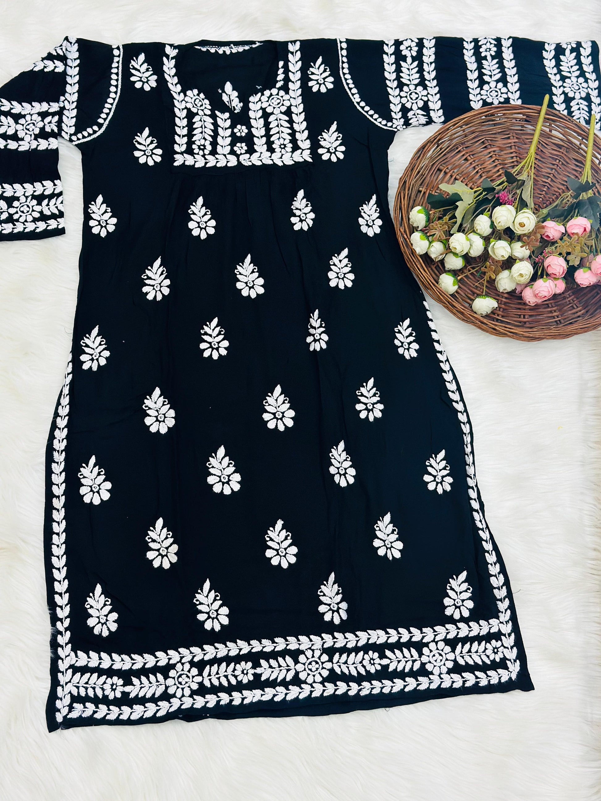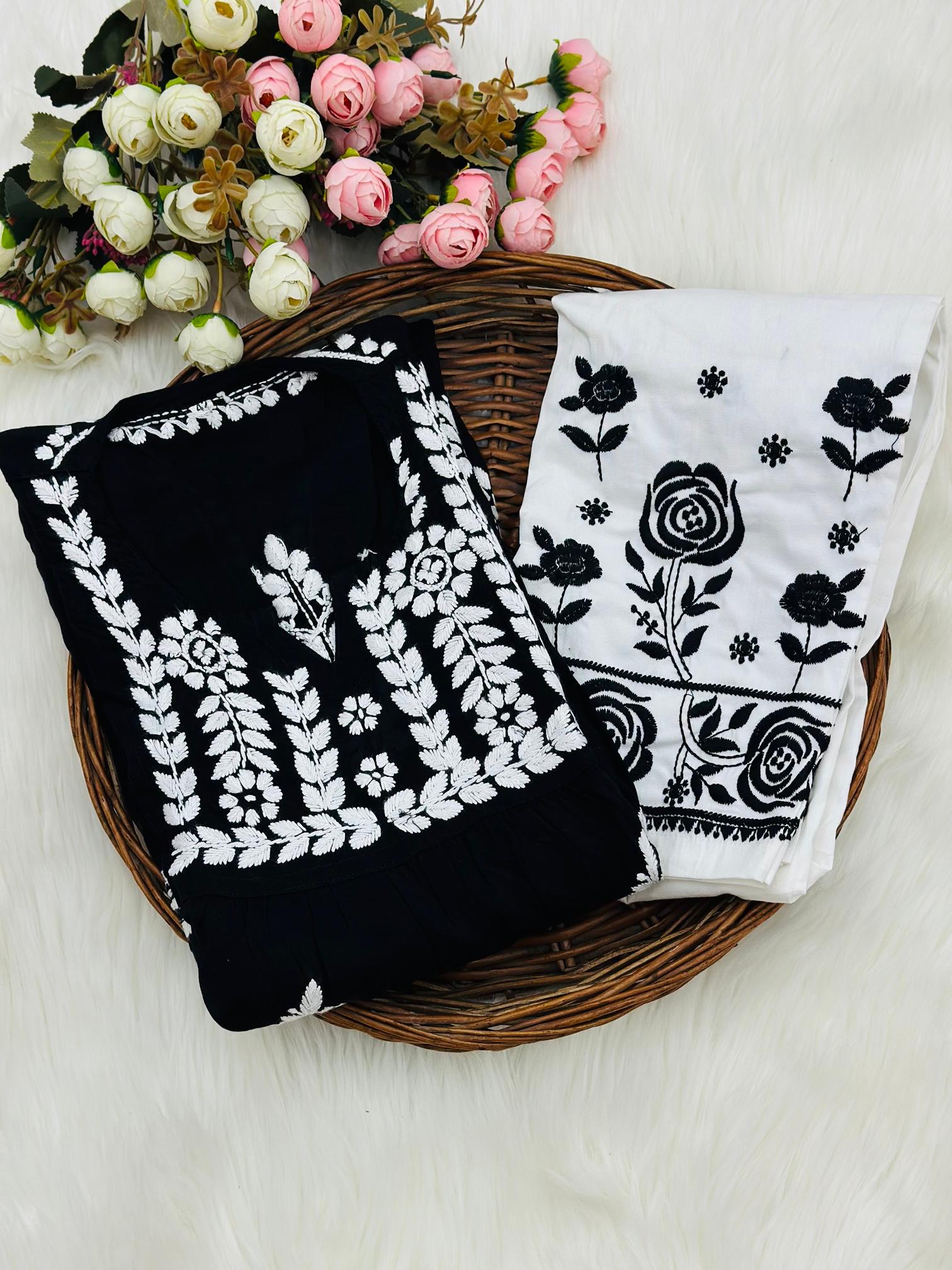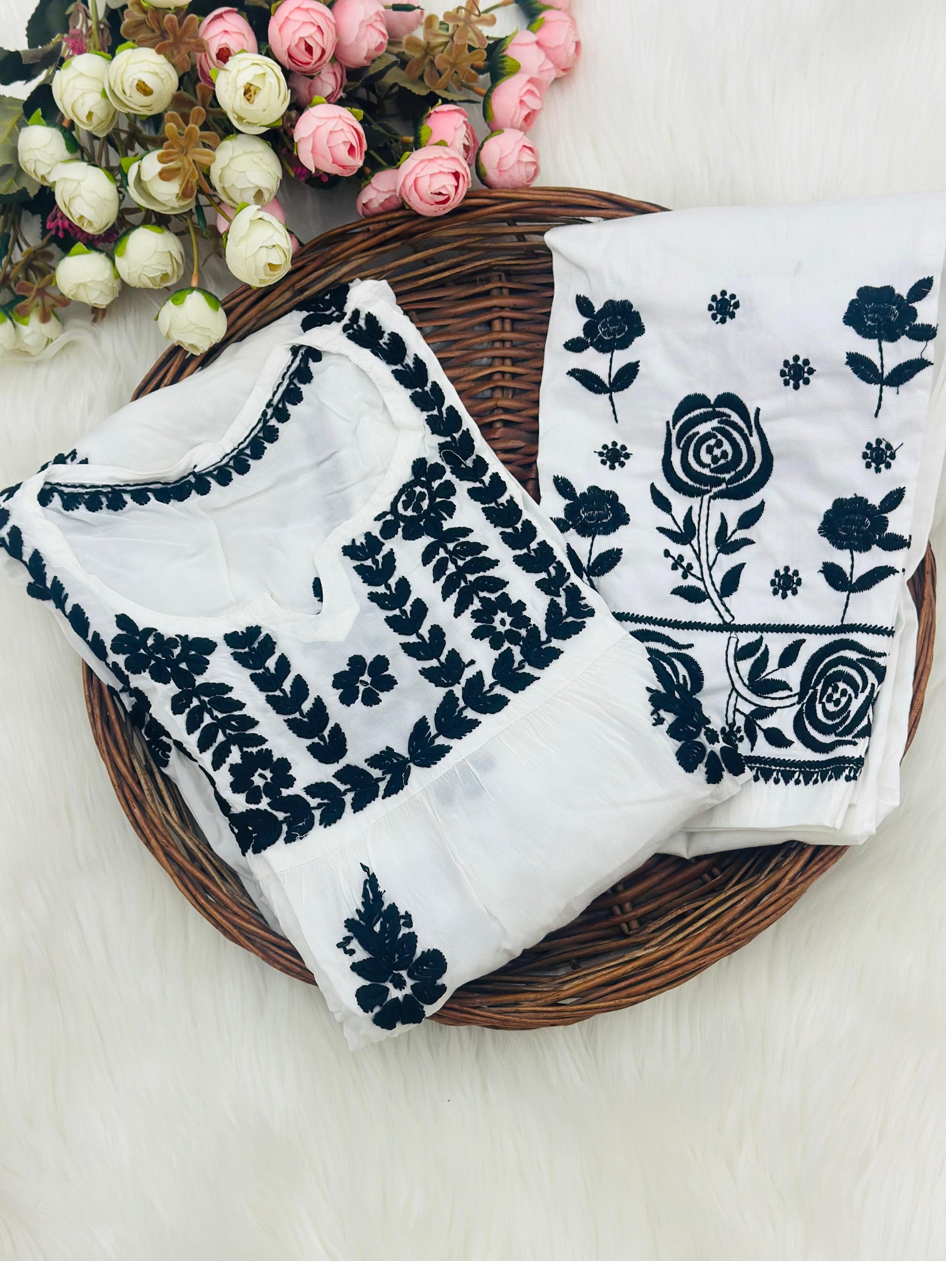 Experience the perfect blend of comfort and style with our Modal Set, adorned with delicate chikankari embroidery. This set is an ideal addition to your wardrobe for an effortlessly elegant look, combining rich tradition with modern design.