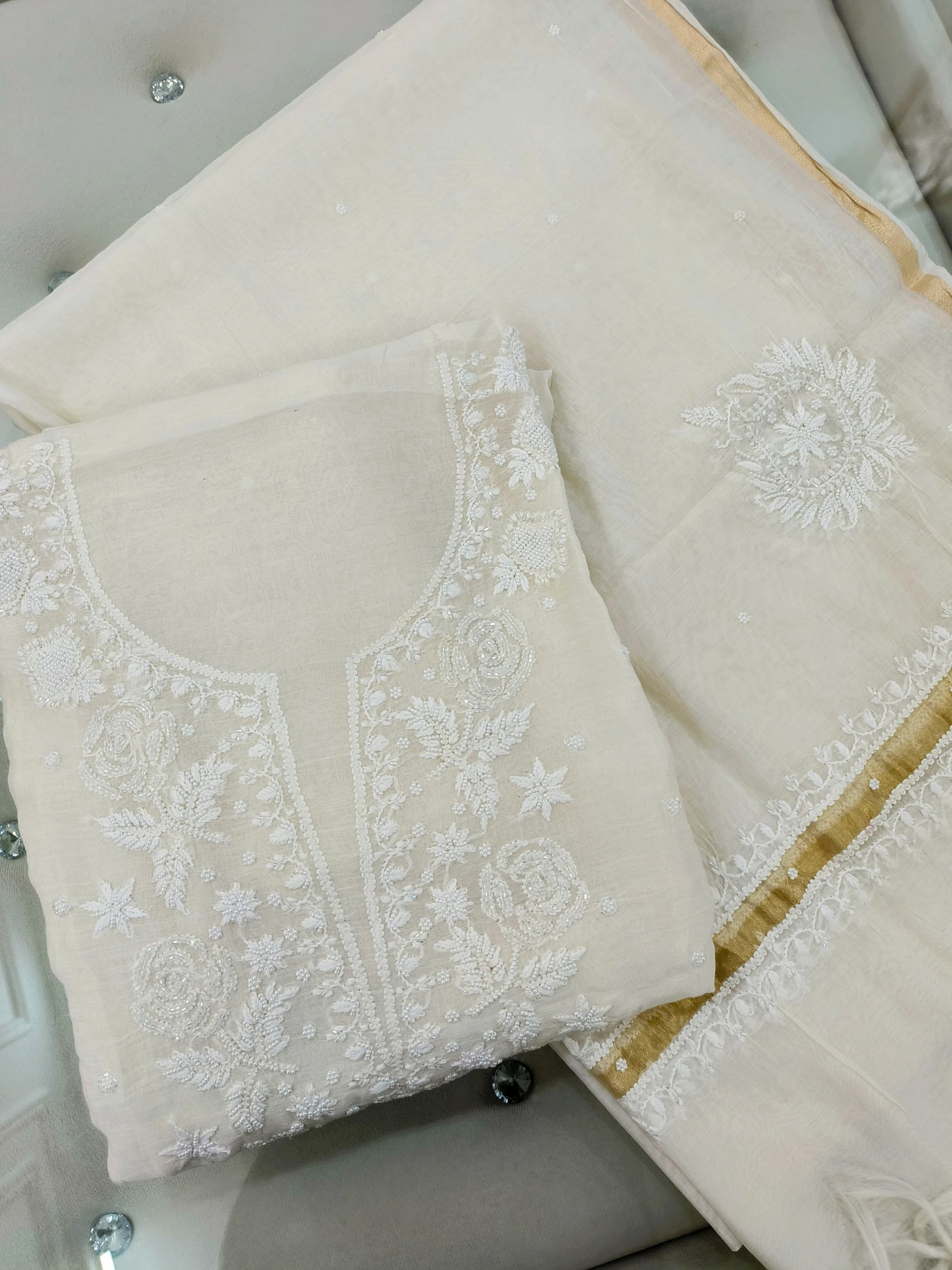 Embroidery- Chikankari with Pearl & Cut-Dana
