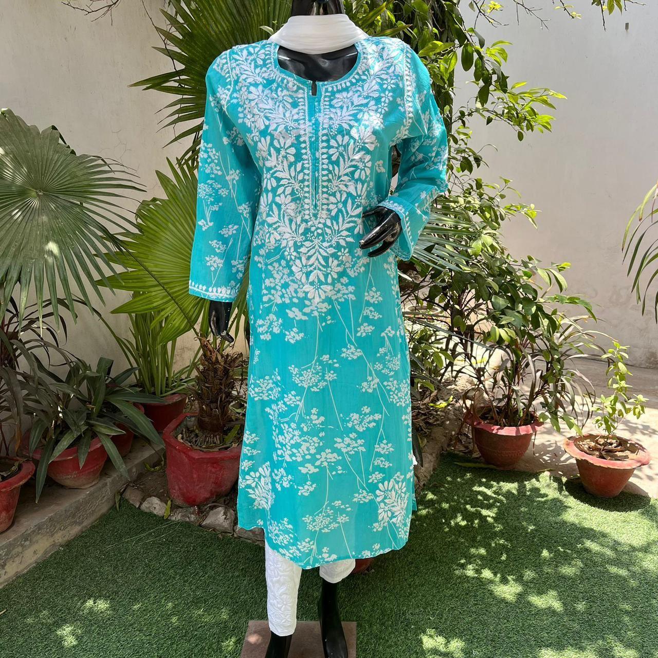 Add a touch of traditional beauty to your wardrobe with our Mul Cotton Kurti, beautifully adorned with hand-embroidered chikankari work. This kurti combines the comfort of mul cotton with the timeless charm of intricate craftsmanship.