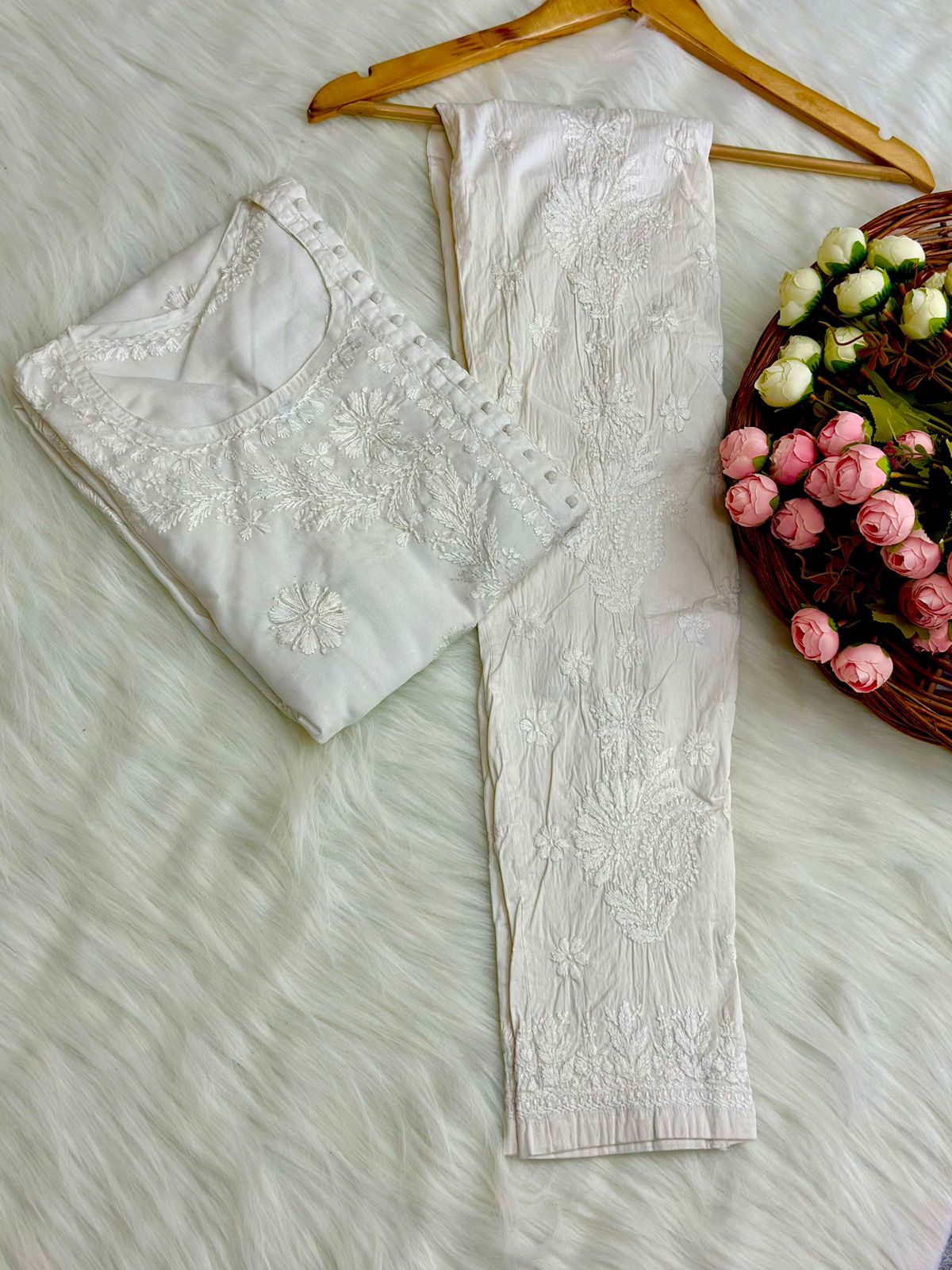 - Exquisite Chikan embroidery for a refined touch