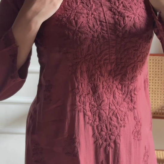 - Includes a straight-cut kurta and wide-leg palazzo pants