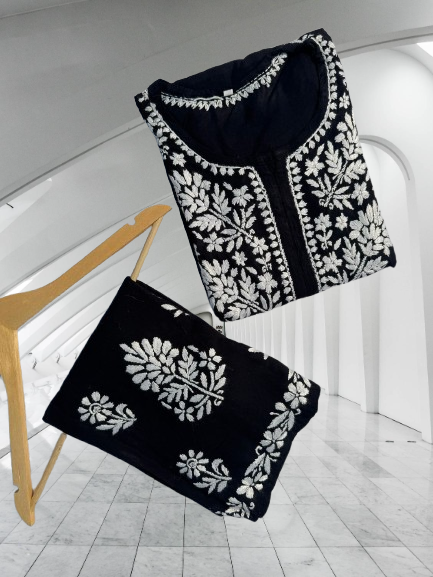 - Work: Hand-embroidered Chikankari design for a timeless appeal