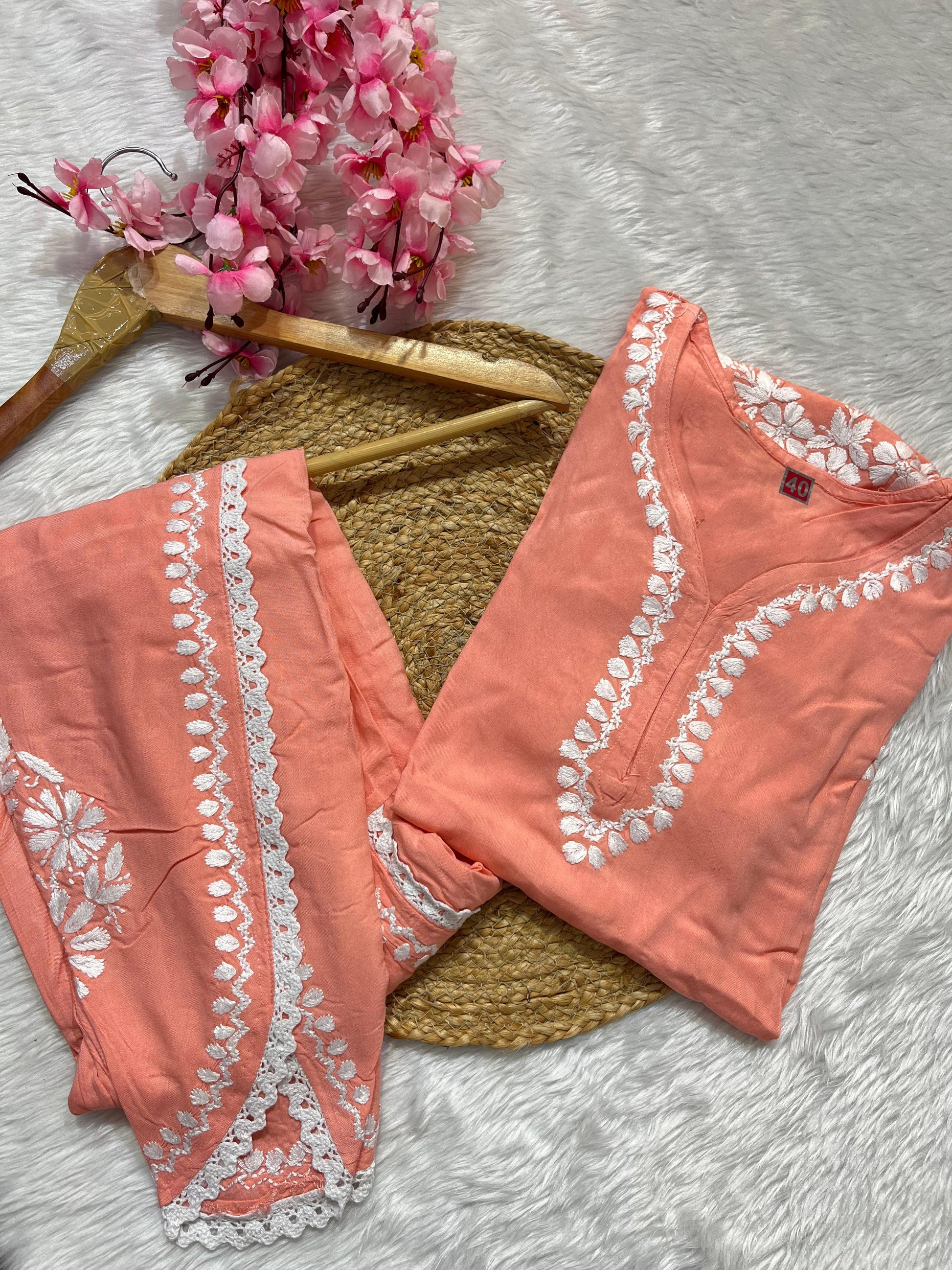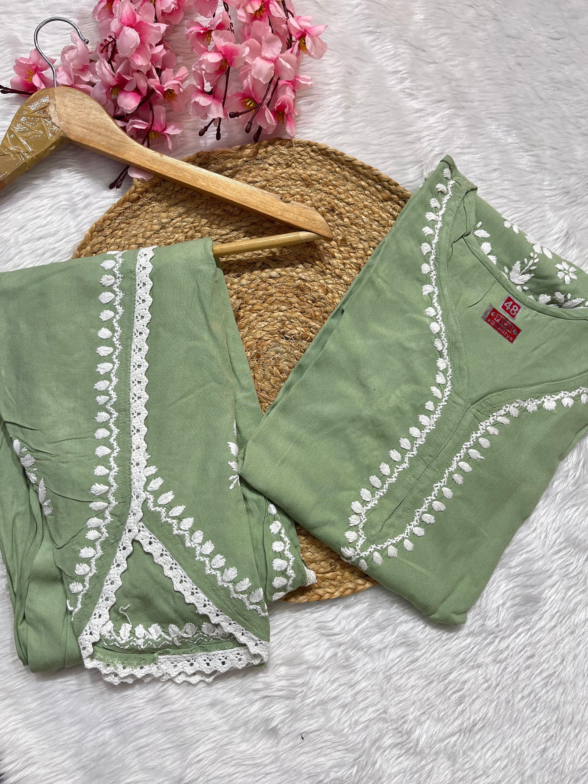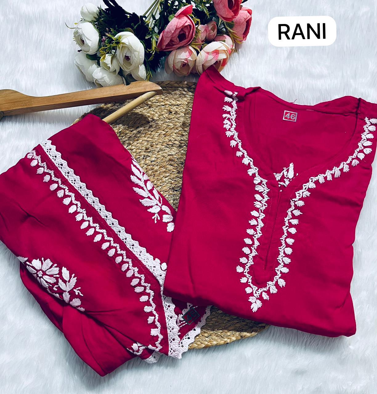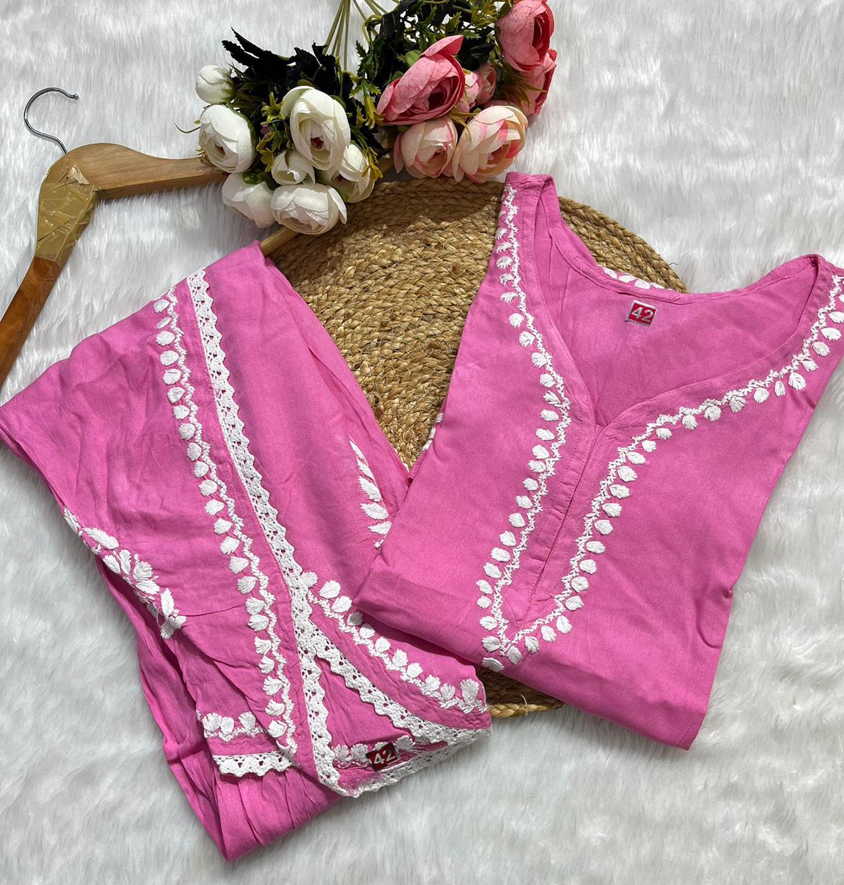 Rayon Co-ord Set with Chikan Embroidery