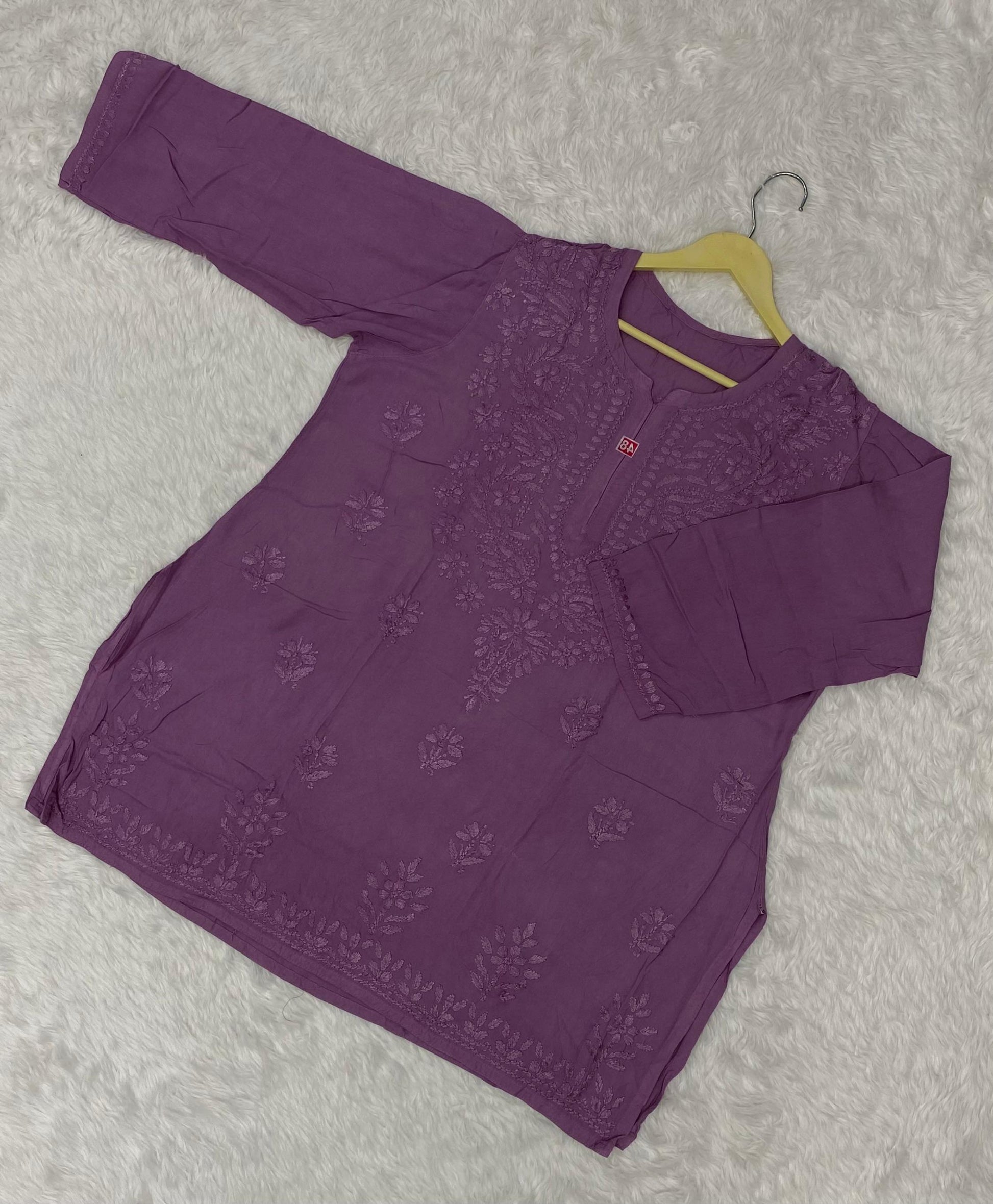 Upgrade your everyday wardrobe with our Rayon Short Top, featuring exquisite Chikan embroidery that reflects the beauty of traditional craftsmanship.