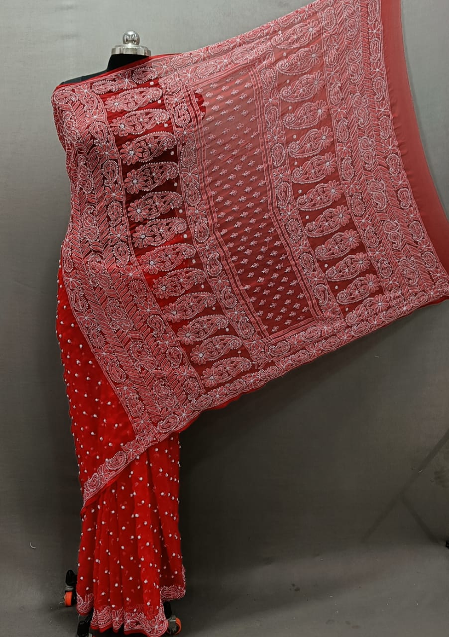 Graceful and timeless, this Georgette Chikankari Saree is the epitome of elegance. Featuring intricate hand-embroidered Chikan work, this saree beautifully combines tradition with contemporary sophistication. The lightweight georgette fabric drapes effortlessly, making it perfect for festive occasions, weddings, and special events. Pair it with statement jewelry and heels to complete your stunning look.