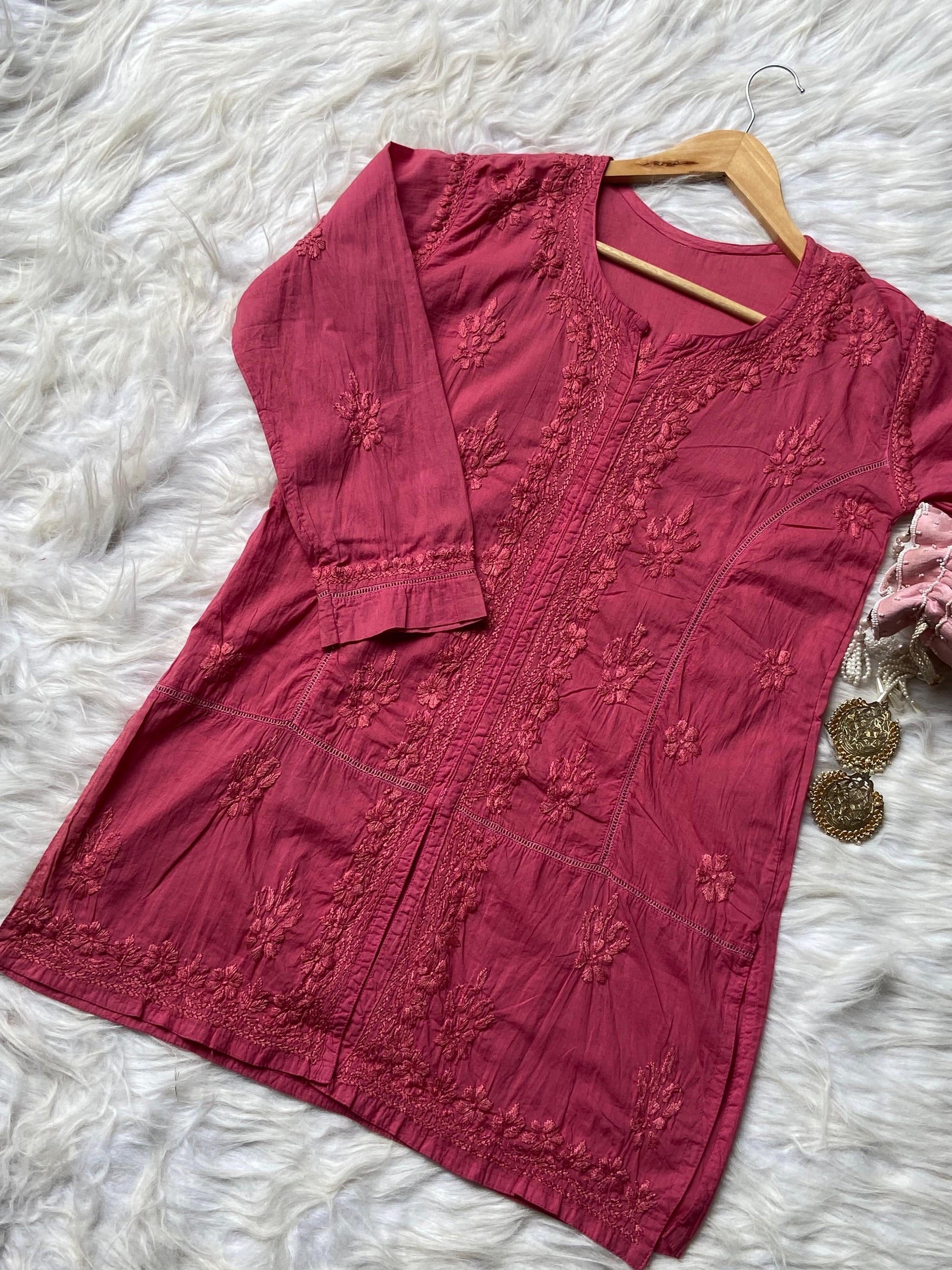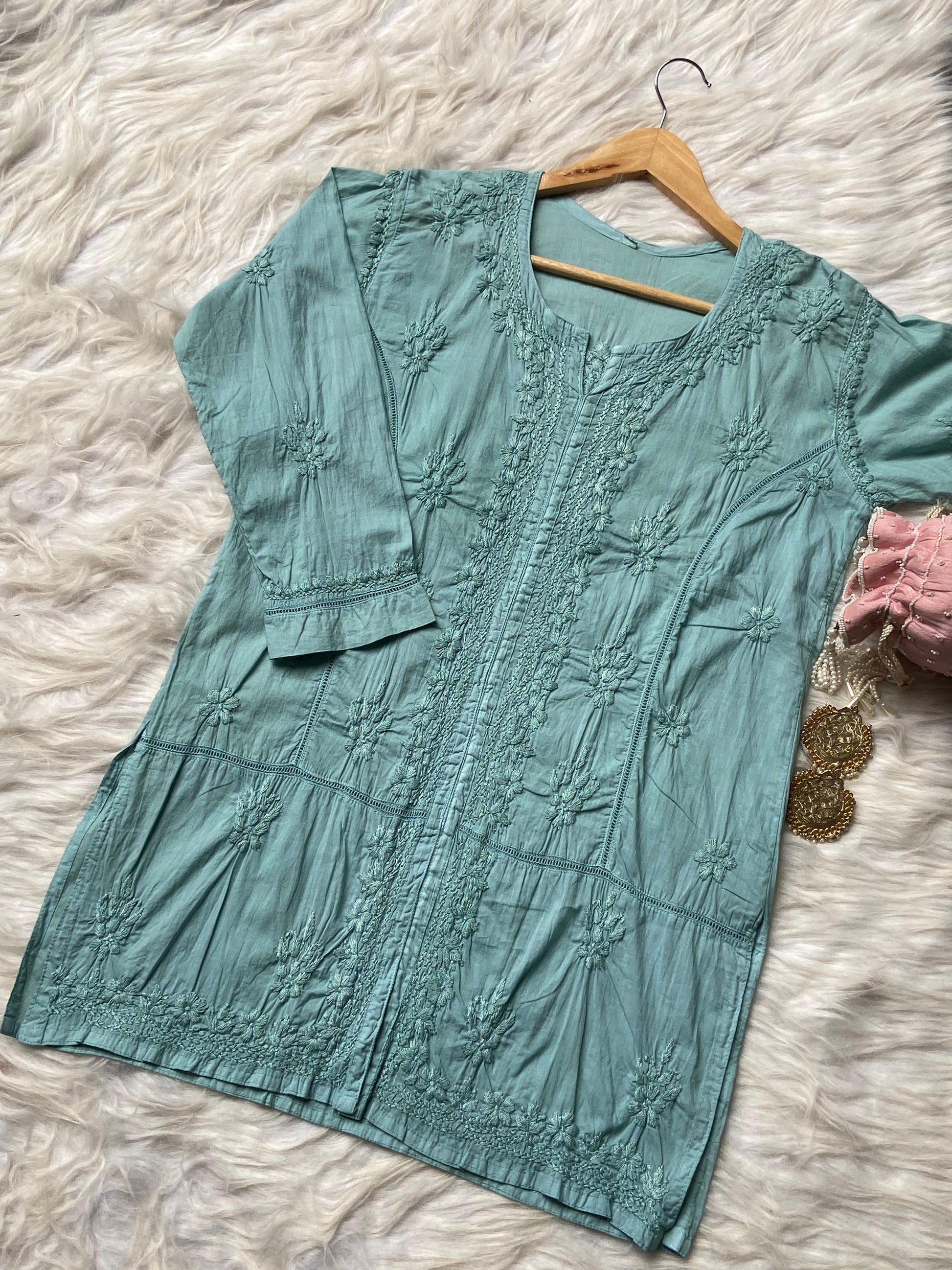 - Exquisite Hand Embroidery: Featuring fine and intricate Chikan embroidery, skillfully handcrafted to perfection, reflecting the timeless art of Lucknowi craftsmanship.