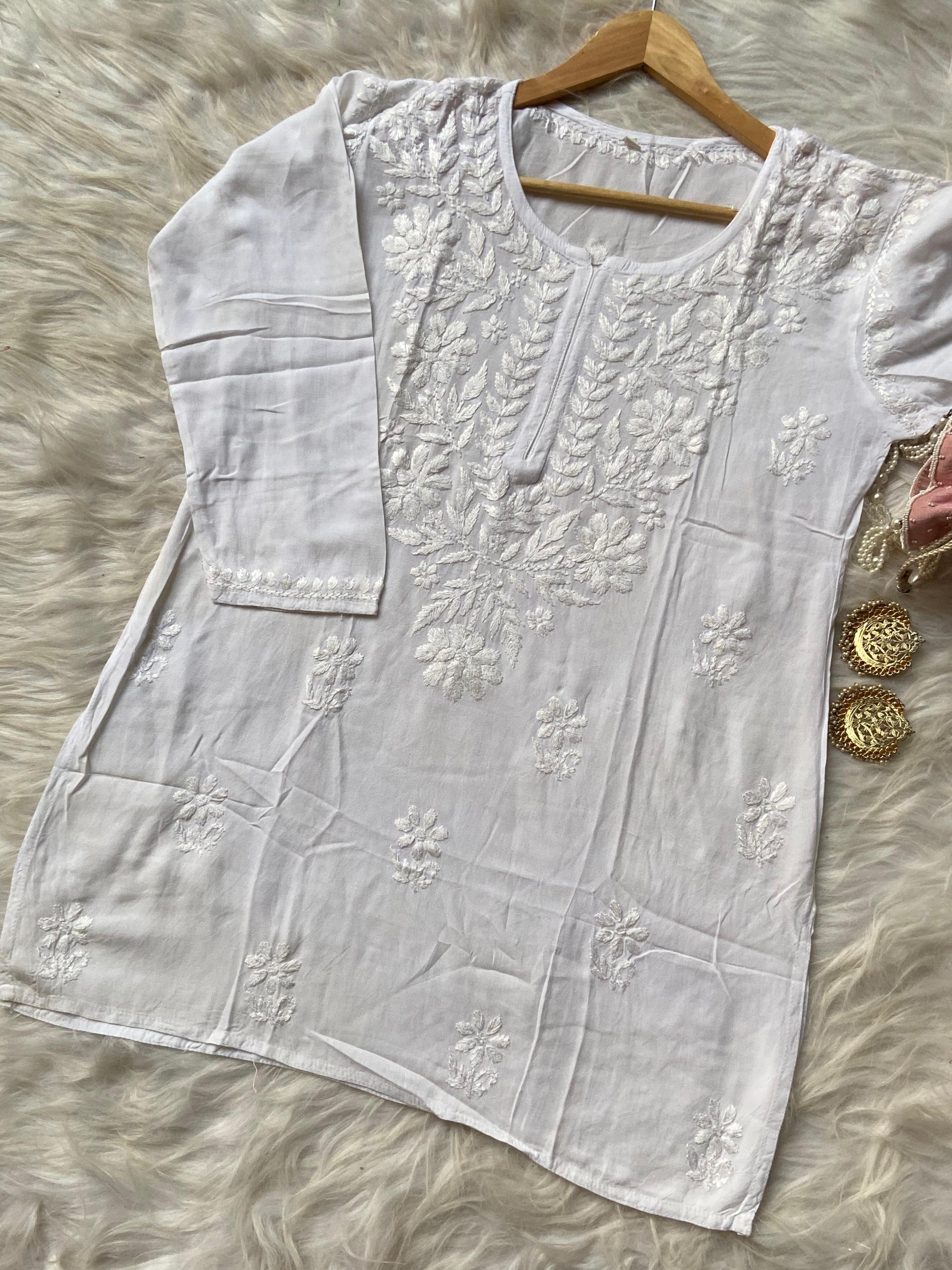 Step into effortless style with our Premium Lightweight Ombre-Dyed Rayon Short Top, a perfect combination of contemporary design and traditional Chikankari artistry.