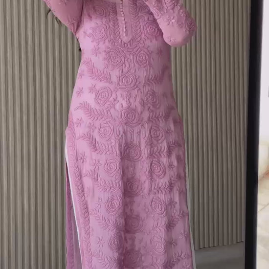 Lucknowi Chikankari Premium Article Beautiful Designer Full Front Jaal Rose Work. (Anchor 3D)Viscose Kurti With Rayon Pintex Plazo set waist size free upto 48 inches .